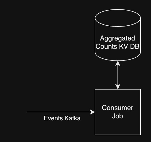 The job reads events from an input topic (kafka, for example). If it is indeed a like event, it fetches the previous counter from the KV DB, increments it, and puts it back again. So for 1 event we are doing O(1) job instead of O(N) join that we did before. In practice, this allows maintaining the counter with delay of only a few seconds.